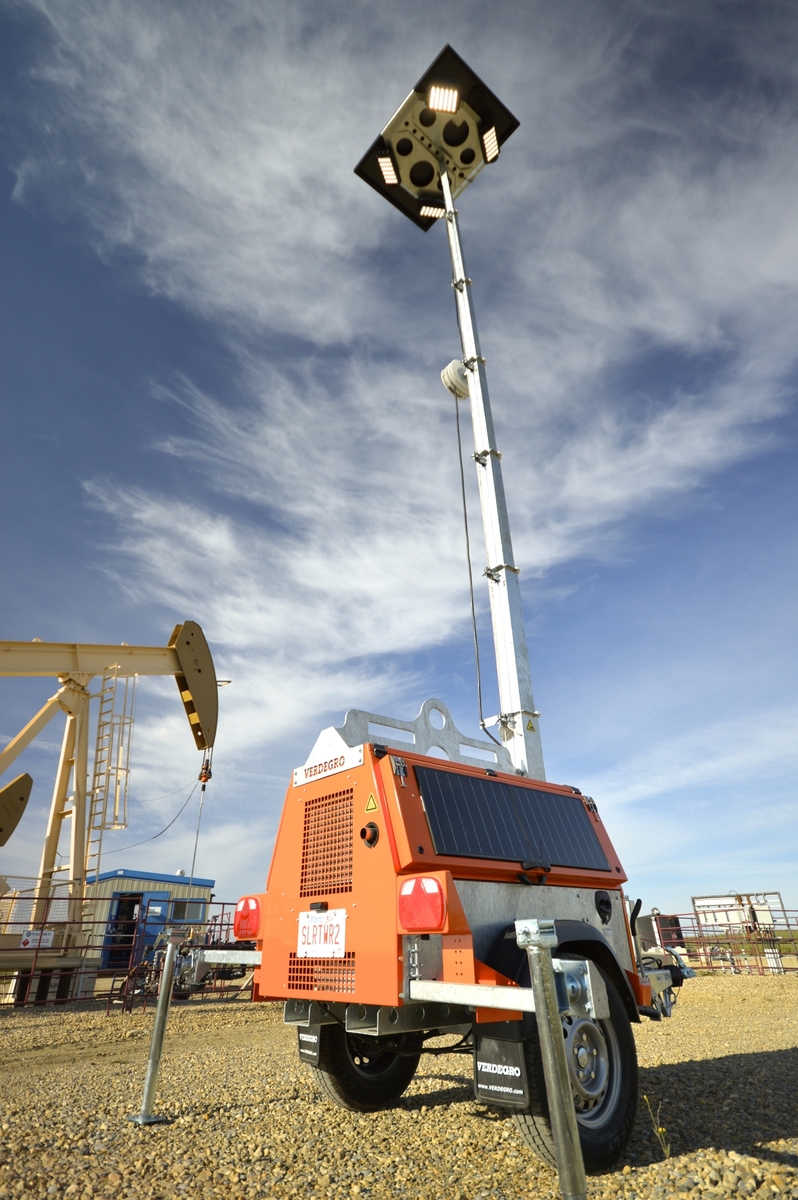 Los equipos Verdegro LED Light Tower Hybrid (LLTT-H) están equipados con una batería la cual es cargada por un sistema de energía solar y un generador de 24 volts CC.